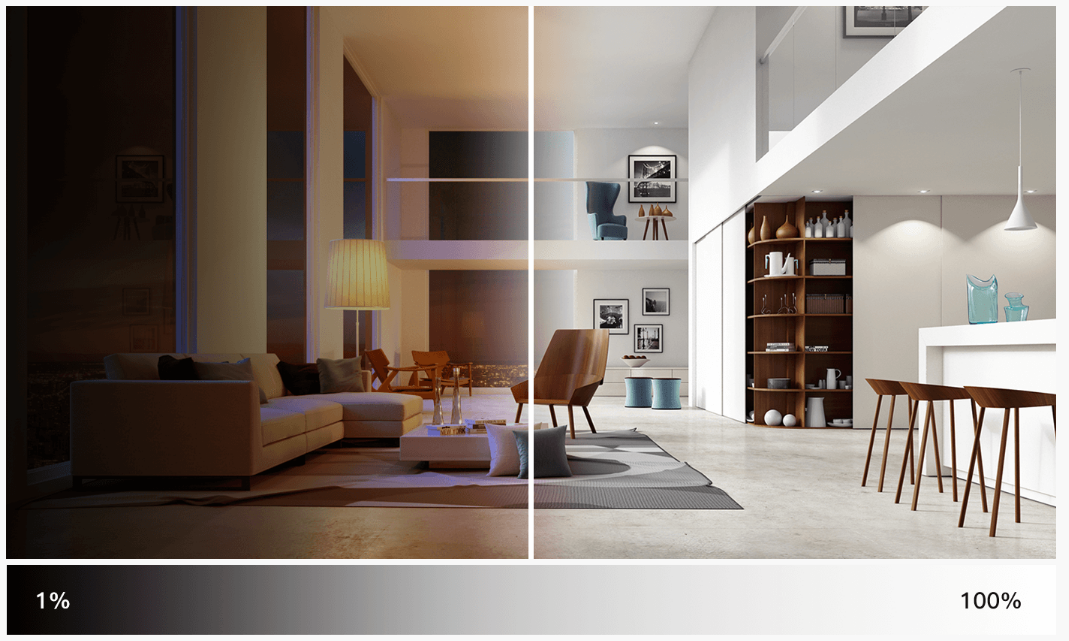 تنظیم روشنایی 1٪ – 100٪، نور به آرامی روشن / خاموش می شود، از حافظه حالت پشتیبانی می کند.